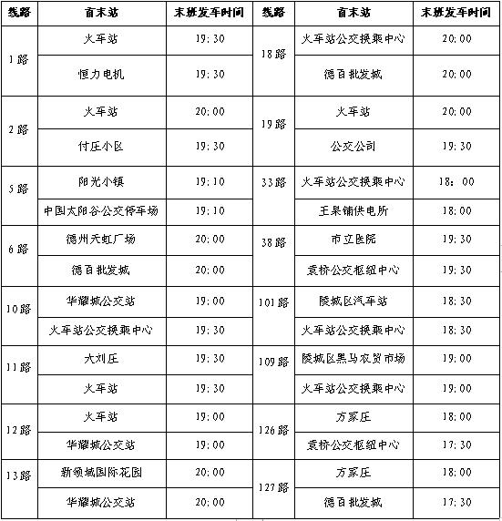 以上線路末班發(fā)車時(shí)間調(diào)整后,首班發(fā)車時(shí)間保持不變。敬請(qǐng)各位乘客相互轉(zhuǎn)告,合理安排自己的出行!公交線路具體運(yùn)營(yíng)信息,市民可查詢德州掌上公交智能APP或撥打公交服務(wù)熱線0534-2321111。